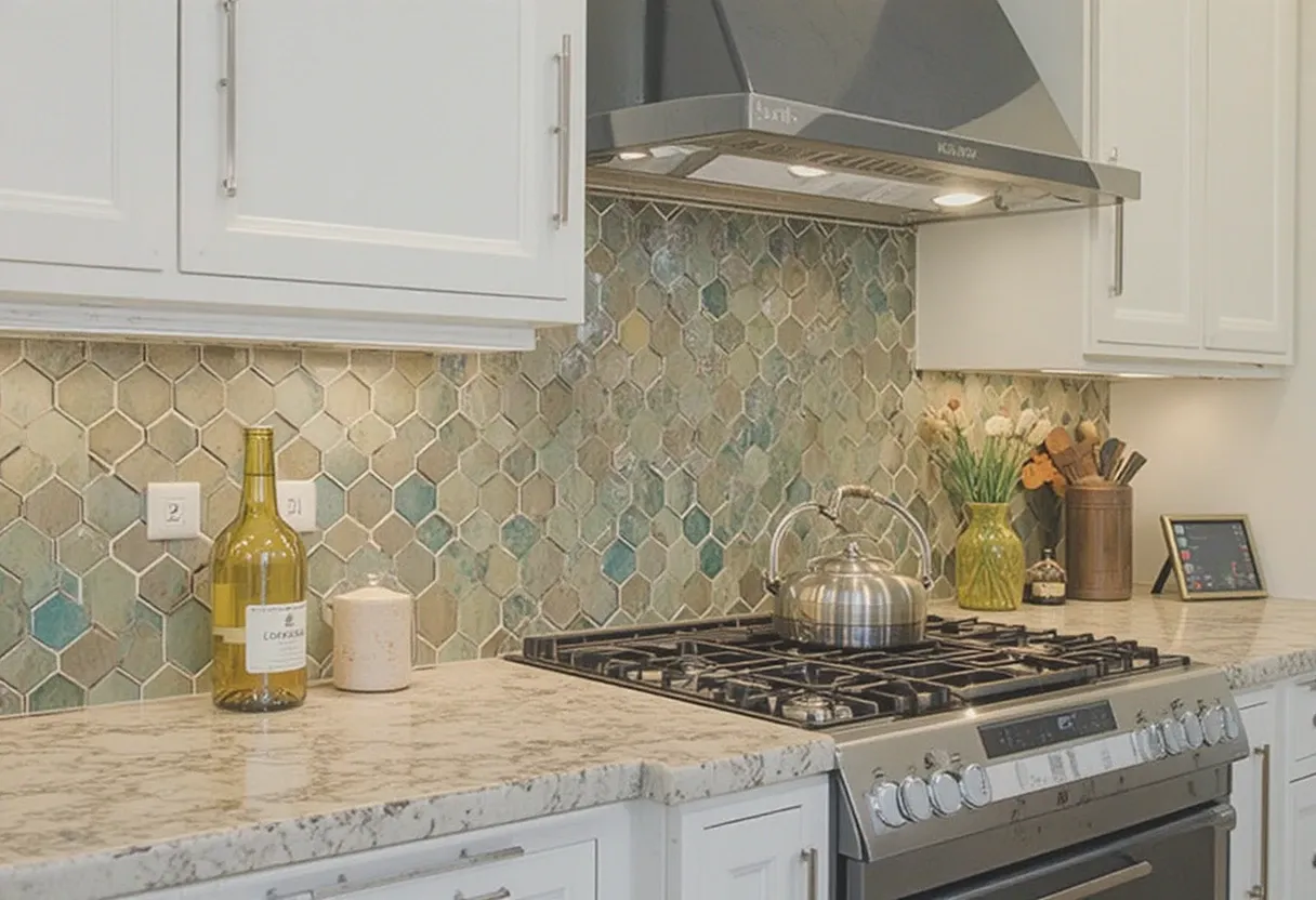 Hexagon tiles solve the problem of making your backsplash stand out with unique geometry. They add instant modern style without needing bold patterns. This idea is moderately priced, costing $5–$20 per square foot.