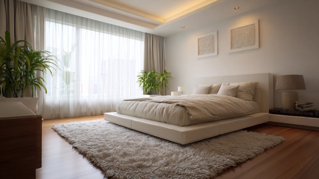 Rugs make your bedroom look polished and cozy, especially if you have hard floors. A soft, plush area rug adds warmth underfoot and defines the space around the bed. Go for a neutral tone or soft pattern that blends with the rest of your decor. Shaggy rugs or high-pile textures increase the comfort factor. This small addition can dramatically change the room’s vibe. Rugs are essential for achieving that snug, homey feel.