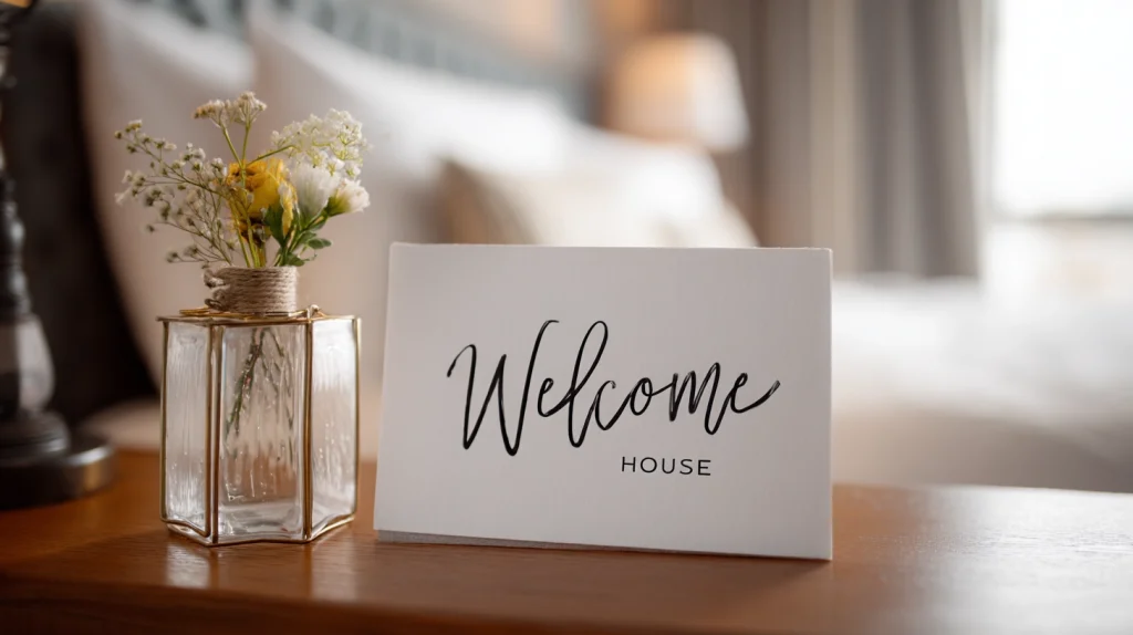 A short handwritten note can make your guests feel truly welcome. Include basic house rules, Wi-Fi info, and emergency contacts. A welcome guide with local places to visit is also thoughtful. It shows effort and hospitality. Keep it simple and friendly. This gesture creates a warm first impression.
