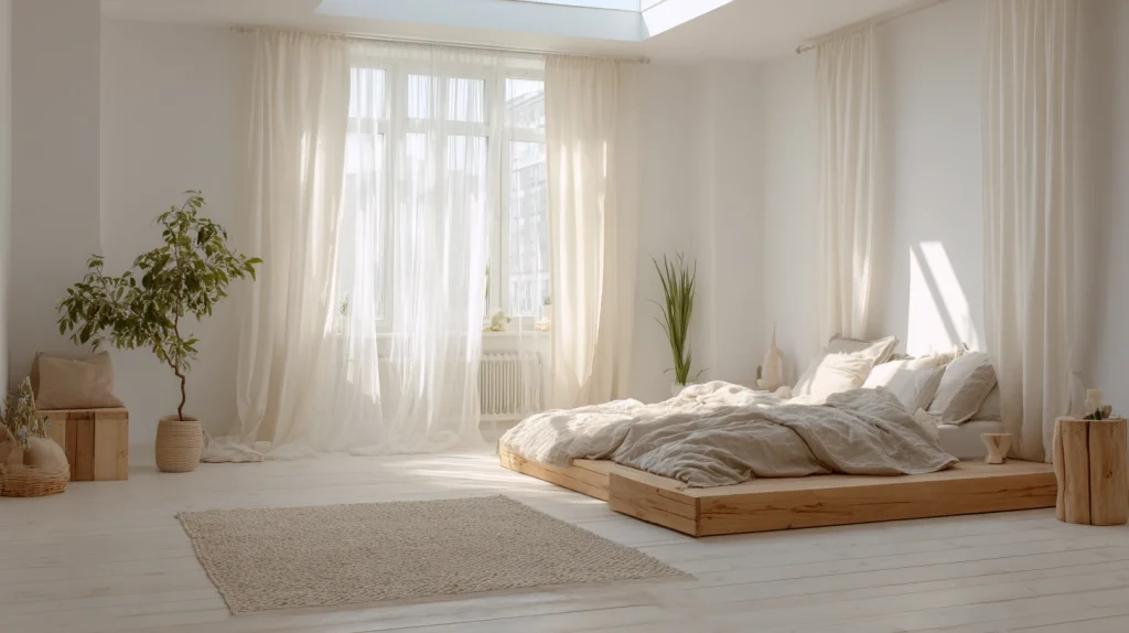 This style focuses on calm, space, and purpose. Use a tight color palette maybe just white, beige, or light grey. Choose only what you truly need and love to keep the room clutter-free. Let natural light and simple materials do the decorating. Everything in the room should feel intentional and peaceful. It’s perfect for those who want their bedroom to be a place of total rest.