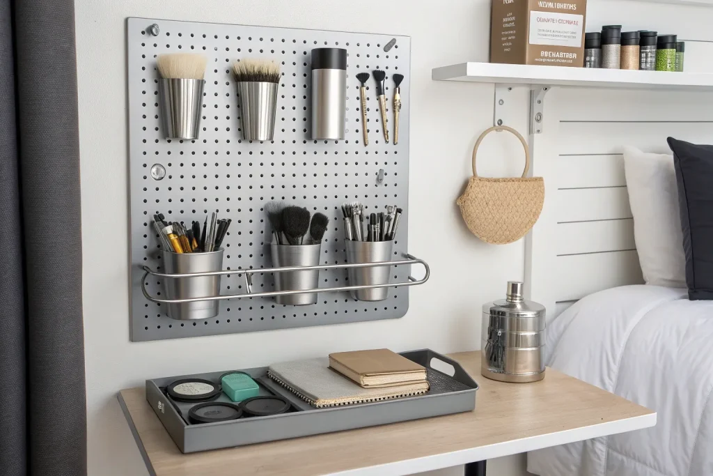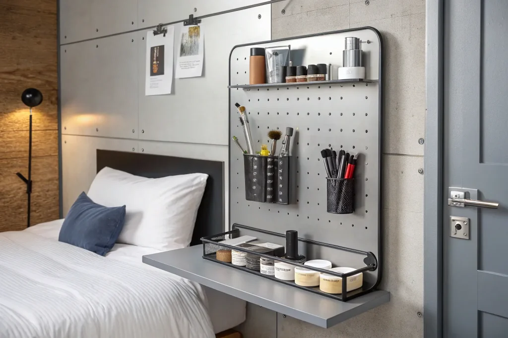 A fold-down vanity is the ultimate space-saver for ultra-small bedrooms. It stays hidden when not in use and flips open only when you need it. This makes the room feel bigger without sacrificing function. The approximate cost is $70–$150, making it a cheap-to-moderate choice. It’s perfect for multi-purpose rooms or minimalist setups.
