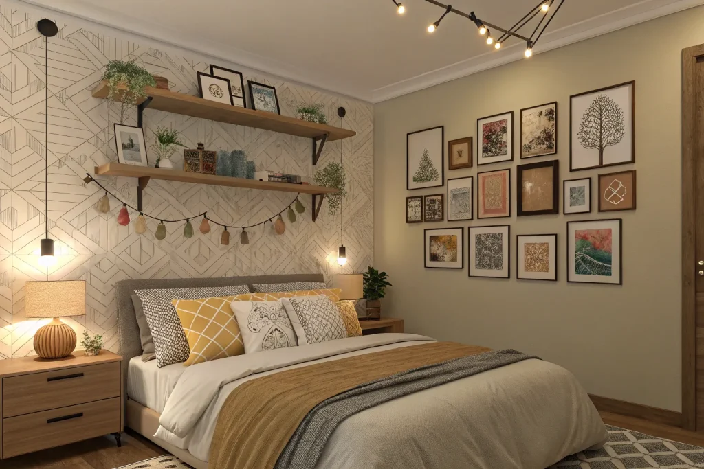 Walls without texture feel cold, but layered décor adds warmth. Costs range from $80–$200, depending on art and frames, making this moderately priced. Gallery walls, tapestries, or woven hangings bring depth to blank walls. It makes your room feel personal and inviting.