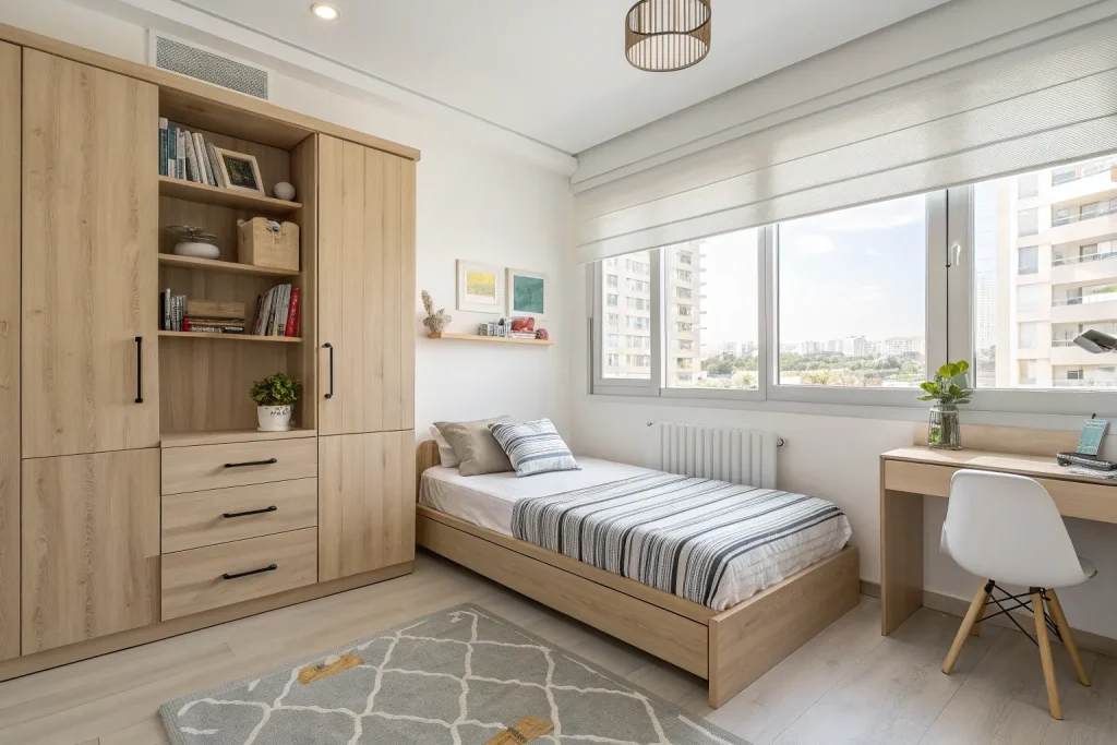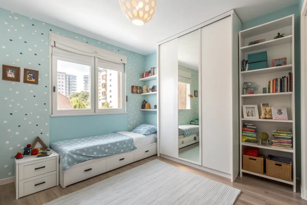 A Murphy bed folds up into the wall, freeing up floor space when not in use. This is ideal for ultra-small rooms that need multifunction areas. It can transform a bedroom into a study or play area instantly. The sleek design keeps the room clutter-free. Cost: $600–$1,500 (expensive).
