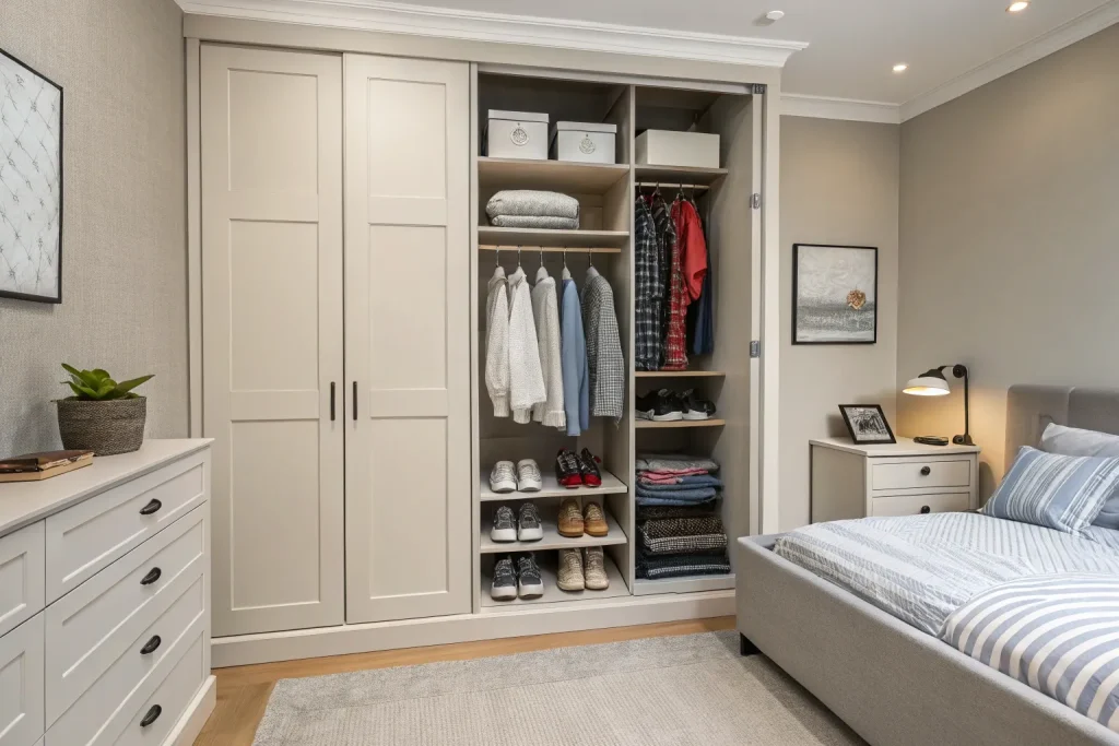 A slim wardrobe offers enough storage for essentials without taking over the room. It fits easily in narrow spaces and can still hold clothes, shoes, and accessories. This is ideal for boys with limited closet space. Its small footprint makes it a practical choice. Cost: $150–$400 (moderate).