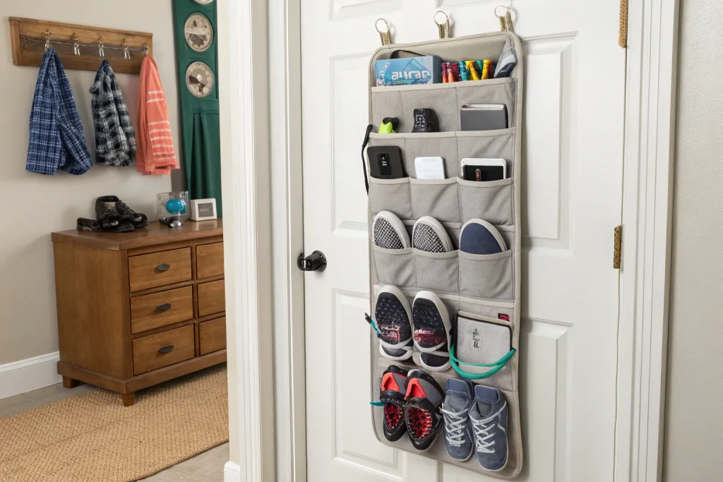 The back of the door is often wasted space, but over-the-door organizers change that. They’re great for shoes, accessories, or small gadgets. This keeps things hidden yet accessible. It’s one of the easiest upgrades for a small room. Cost: $15–$50 (cheap).