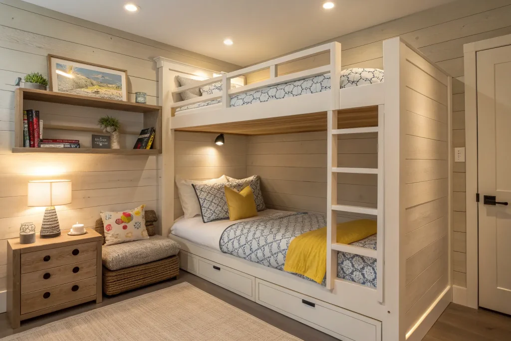 Bunk beds are a smart choice when space is tight and you need extra sleeping options. They use vertical space efficiently, leaving more floor area for playing or studying. Even if there’s only one child, the lower bunk can be turned into a reading nook or storage. This makes the room functional without losing comfort. Cost: $200–$600 (moderate to expensive).
