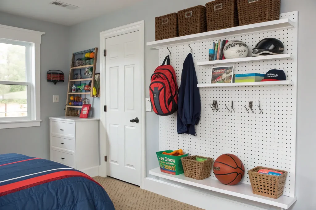 A pegboard turns any empty wall into customizable storage for school supplies, gadgets, or sports gear. It’s flexible enough to rearrange whenever needed. This keeps essentials accessible without cluttering desks or shelves. It’s both functional and budget-friendly. Cost: $25–$70 (cheap).
