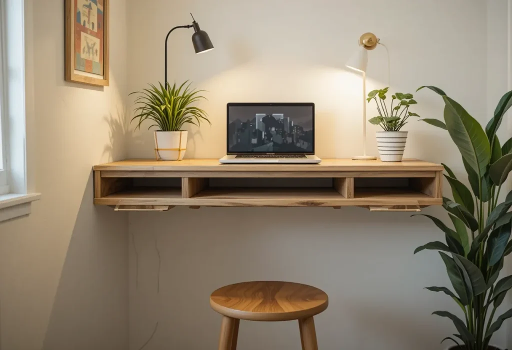 21. Install a Floating Desk for Workspace Convenience