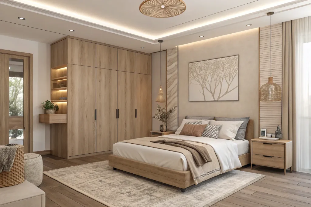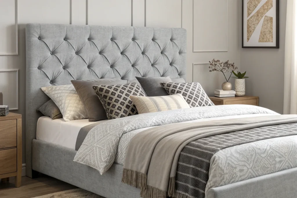 A textured headboard frames your bed and adds luxury. Materials like tufted fabric, rattan, or wood bring depth to your bedroom design. It’s an easy upgrade without changing the whole bed frame. Costs about $100–$250, making it expensive.