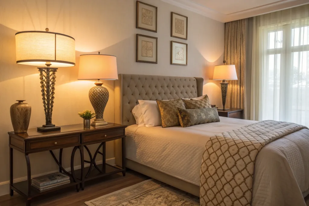 Soft, layered lighting instantly changes a room’s atmosphere from plain to inviting. Floor lamps, table lamps, and string lights all help you avoid the harsh glare of overhead bulbs. The warm glow not only relaxes the eyes but also makes the entire room feel more intimate. This idea costs $30–$100, which is moderately cheap for such a noticeable impact.