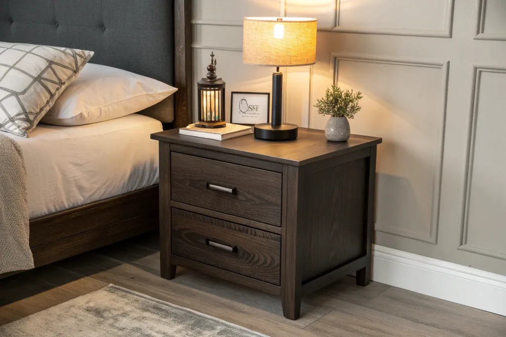 Minimalist nightstands keep the room uncluttered while providing essential storage. Dark finishes blend seamlessly with a cozy bedroom setup. The simplicity ensures focus stays on other design elements like bedding and lighting. At $80–$200, they’re cheap to mid-range.