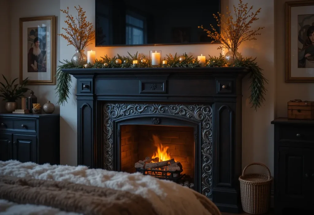 A faux fireplace mantel instantly becomes a cozy focal point. You can style it with candles, lights, or seasonal décor. The structure adds charm without needing actual fire. At $200–$600, it’s expensive but impactful.