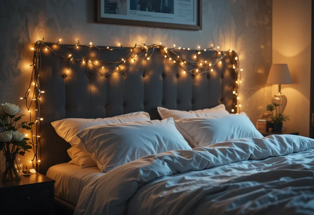 String lights add a soft glow without overpowering the room. They frame the bed beautifully and create a dreamy effect. This is an easy DIY option that fits any budget. At $15–$40, it’s cheap.