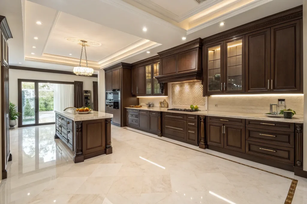 Dark brown cabinets need natural light, and skylights provide the perfect solution. They flood the kitchen with daylight, balancing the heaviness of the cabinetry. This feature also makes the space feel larger and more open. With installation costs between $1,000–$3,000, skylights are definitely an expensive upgrade.