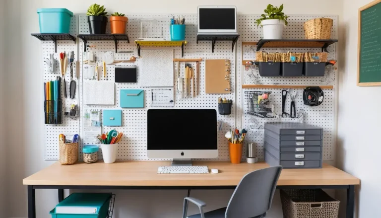 A pegboard is a board with holes for pegs. You can hang baskets, tools, or small items on it. It’s great for keeping your desk area neat. Move the pegs around to fit your needs. Pegboards come in many colors and sizes. They also look cool on the wall. It’s both fun and helpful.