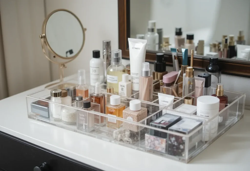 A drawer vanity tray setup is perfect when you’re low on space but high on essentials. It’s best because it allows you to organize everything neatly on top of your dresser without buying anything new. You get function without the fuss. Approximate cost is $10–$30, making it one of the cheapest ways to feel fancy.