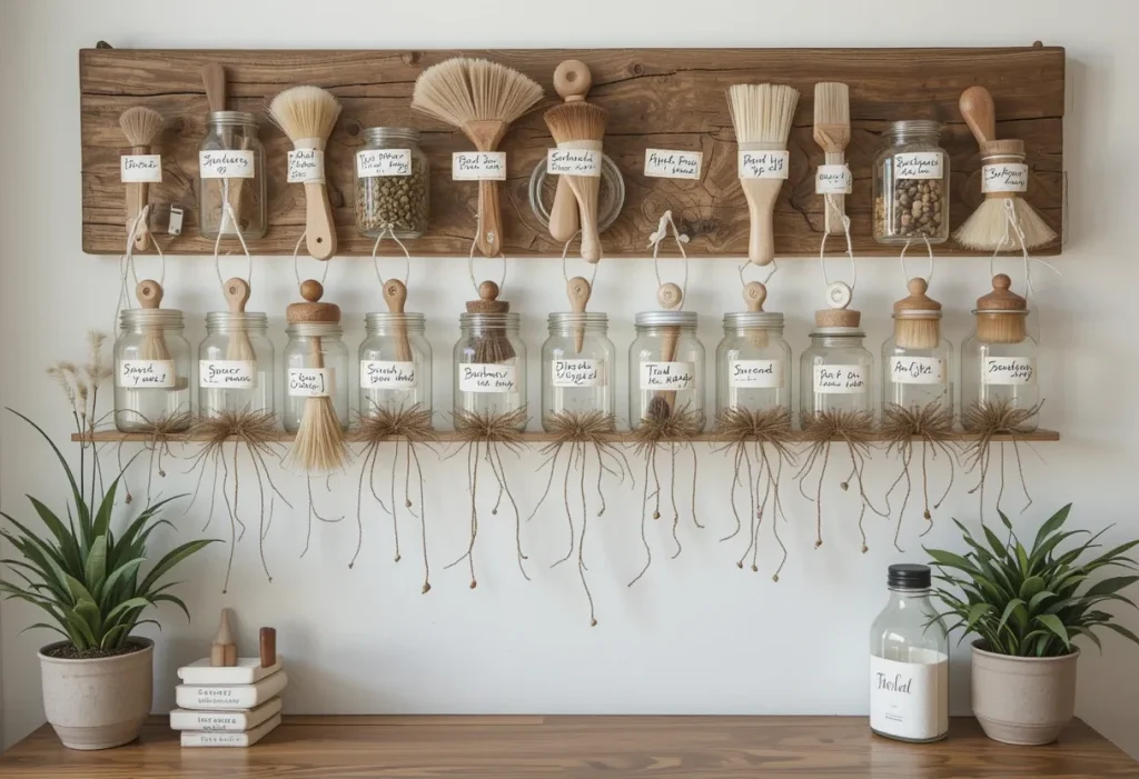 This setup is best for the ultra-organized type who wants quick access to tools. Mounting jars or cups on the wall keeps brushes clean, accessible, and off your surface. It’s practical, tidy, and creative. Approximate cost is $15–$30, making it a very cheap yet satisfying project.