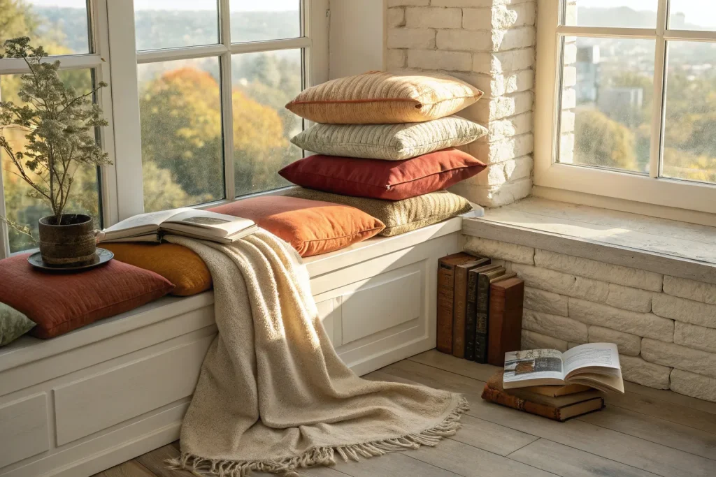 Floor cushions create an extra cozy, casual seating spot in your fall bedroom. They’re great for reading, relaxing, or extra seating when needed. Prices range from $30–$80, making them a cheap to mid-range addition. Their portability lets you easily move them around the house. They also bring a relaxed, inviting vibe perfect for cooler months.
