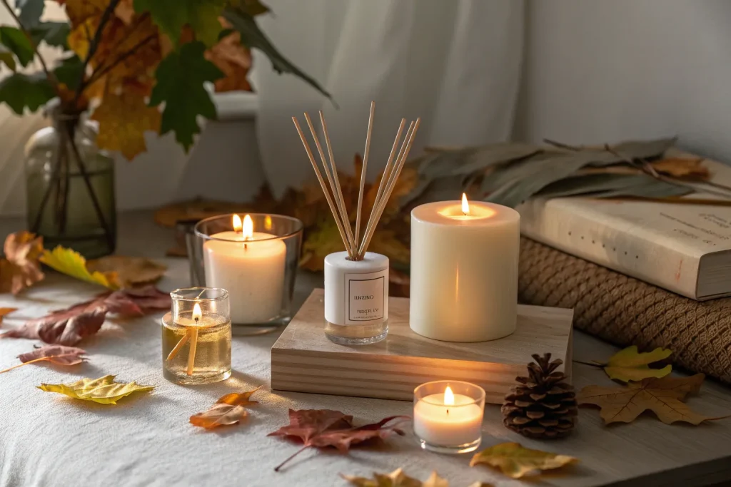 A scent diffuser offers long-lasting fall fragrance without open flames. Essential oils like clove, cinnamon, and vanilla create a welcoming atmosphere. Expect to spend $20–$50, making it a cheap to mid-range choice. Diffusers are safer for continuous use and work well in small spaces. The scent can be adjusted easily for intensity.