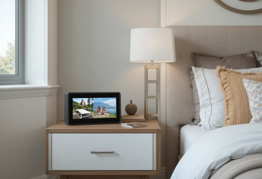 A digital frame brings warmth and personality to the room without taking up much space. It cycles through photos, so your guests feel connected even if they’re just seeing snapshots of your dog. You can get a decent frame for $70–$150, which makes this a moderately expensive idea with a big emotional return. It’s a modern touch that adds heart to the decor.