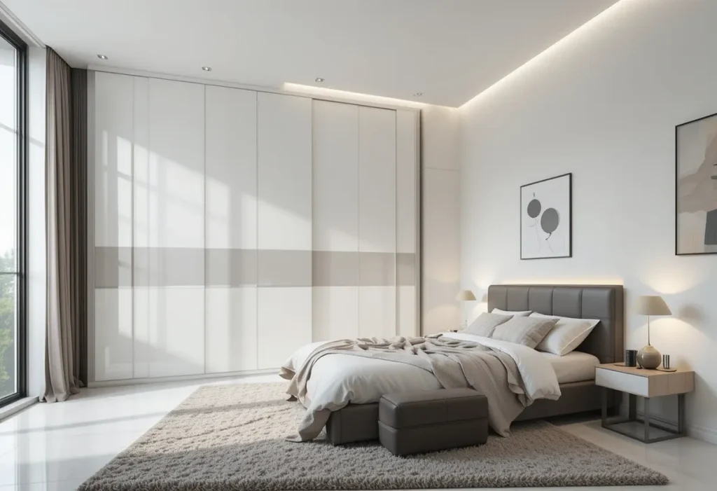 A corner wardrobe makes the most of often-wasted corner space. It’s a smart solution for small bedrooms where every square foot matters. These wardrobes usually come in triangular shapes and offer surprising storage depth. With the right finish, they can even be a focal point. This is a moderately priced idea, costing about $250–$600.