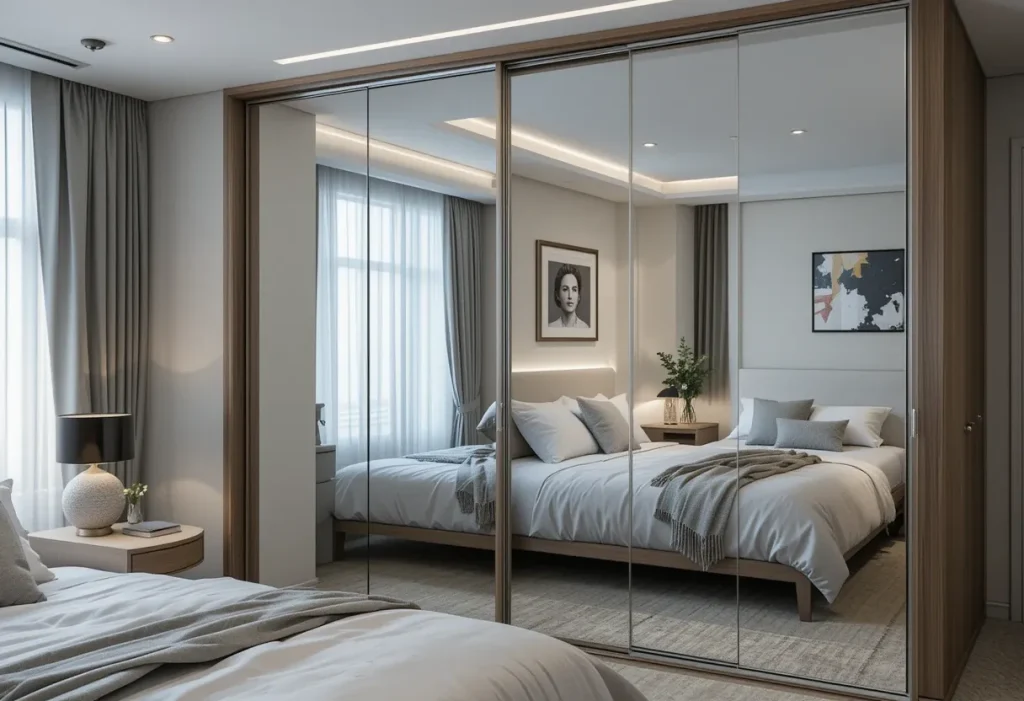 A mirrored armor gives the illusion of more space while offering full storage capabilities. It reflects light and adds a touch of elegance to any room. These wardrobes often feature drawers, shelves, and a hanging rod in one neat package. Perfect for rooms lacking a full-length mirror. Costs range from $150–$450, making it a mid-range investment.