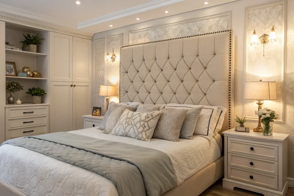 An upholstered headboard gives softness and comfort while elevating the bed’s look. It makes the room feel more finished and inviting. The cost is around $150–$400, which is expensive but very impactful. It’s an investment that changes your bedroom centerpiece instantly.