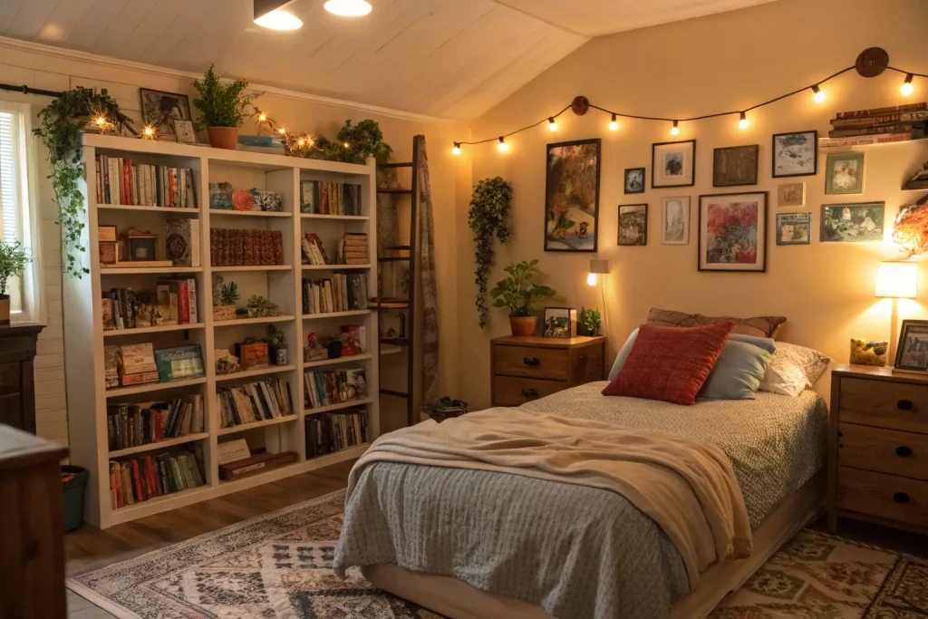 Bookshelves can display books, candles, plants, and decor, making the space warmer and more personal. They prevent the room from looking empty while adding character. Costs vary from $80–$200, making this moderately expensive. They serve both style and function, which adds to coziness.