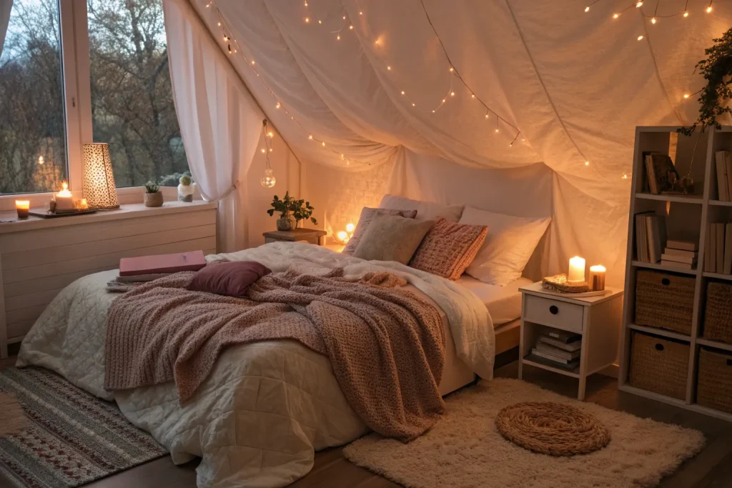 The bed is the centerpiece, and soft bedding makes or breaks the coziness. Quality sheets and duvets feel inviting and improve sleep. This costs about $80–$200, which is moderately expensive but worth it daily. Comfort starts and ends with bedding, making this a priority.