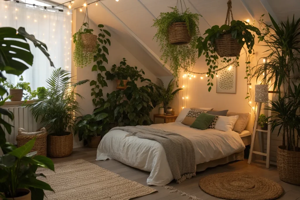 Plants bring in freshness, add life, and improve air quality, making the room instantly welcoming. Even one large plant can transform the feel of the space. Real plants cost $10–$50, which is cheap, while faux plants are slightly pricier but maintenance-free. Either option makes your room calmer and cozier.