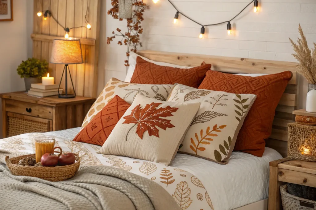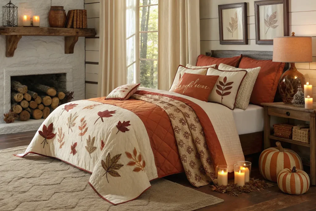 Go all in with a fall-themed bedding set think leaves, pumpkins, or earthy tones. It’s bold but fun. Prices are about $80–$150, making it moderately expensive. It’s like dressing your bed for Halloween but classy.